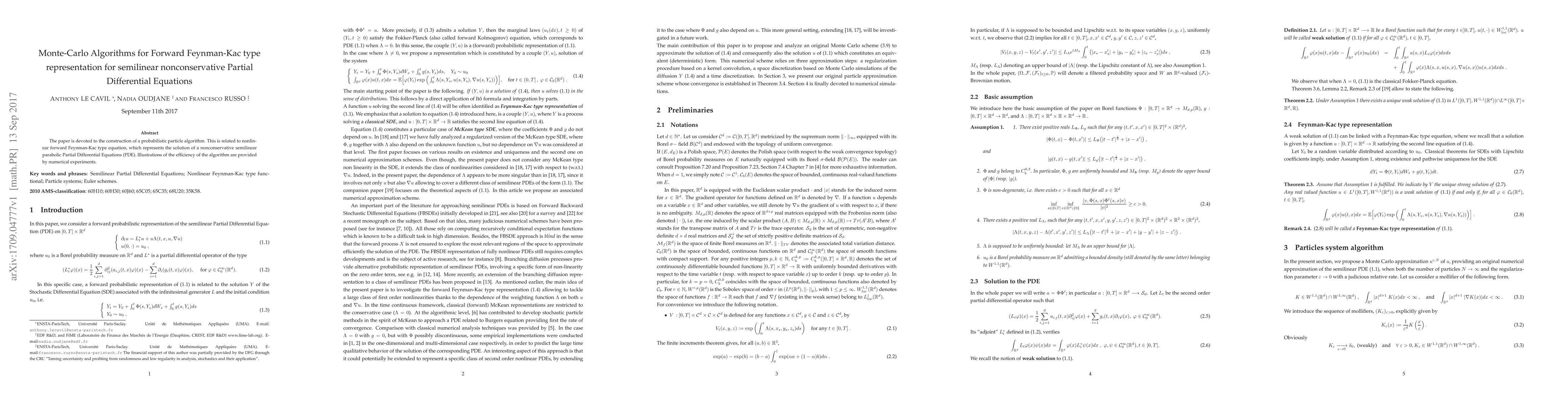 The paper develops a probabilistic particle algorithm for solving nonlinear forward Feynman-Kac equations, representing solutions of semilinear nonconservative parabolic PDEs, and demonstrates its efficiency through numerical experiments.