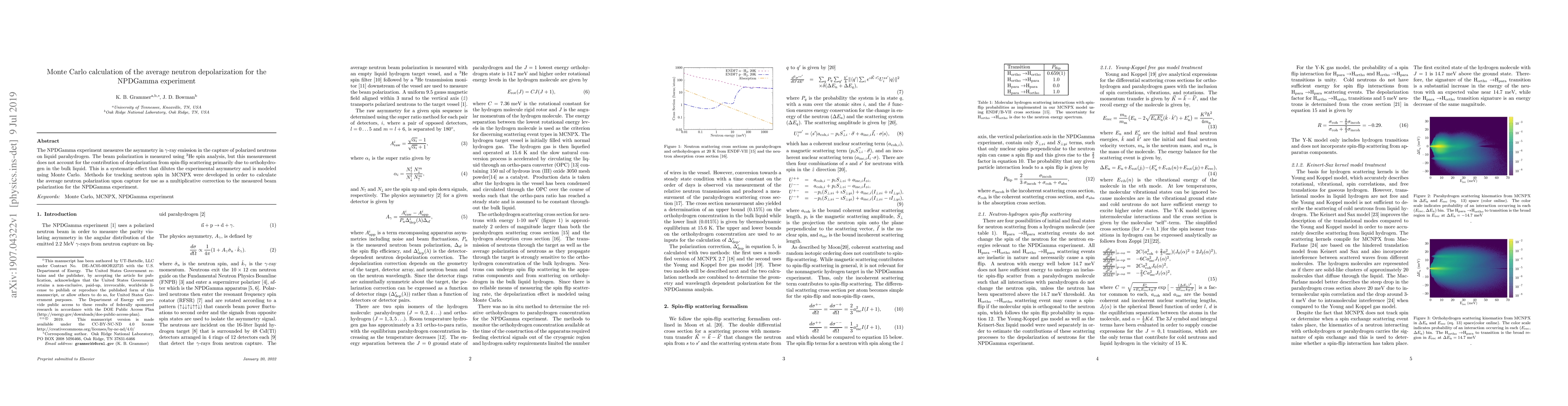 The NPDGamma experiment measures neutron capture asymmetry using polarized neutrons, but systematic depolarization from orthohydrogen affects the results. Monte Carlo simulations using MCNPX were developed to calculate the average neutron depolarization, providing a correction factor for the experimental data.