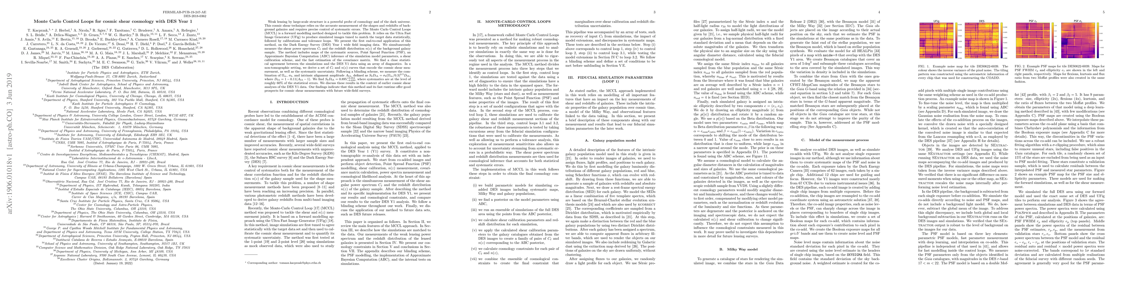 This paper presents the application of Monte Carlo Control Loops (MCCL) for cosmic shear analysis using Dark Energy Survey (DES) Year 1 data, achieving precise control of systematic errors. The method yields a combined measurement of $\Omega_m$, $\sigma_8$, and intrinsic alignment amplitude, finding $S_8D_{\rm{IA}}=0.895^{+0.054}_{-0.039}$, and shows promising results for future wide-field surveys.