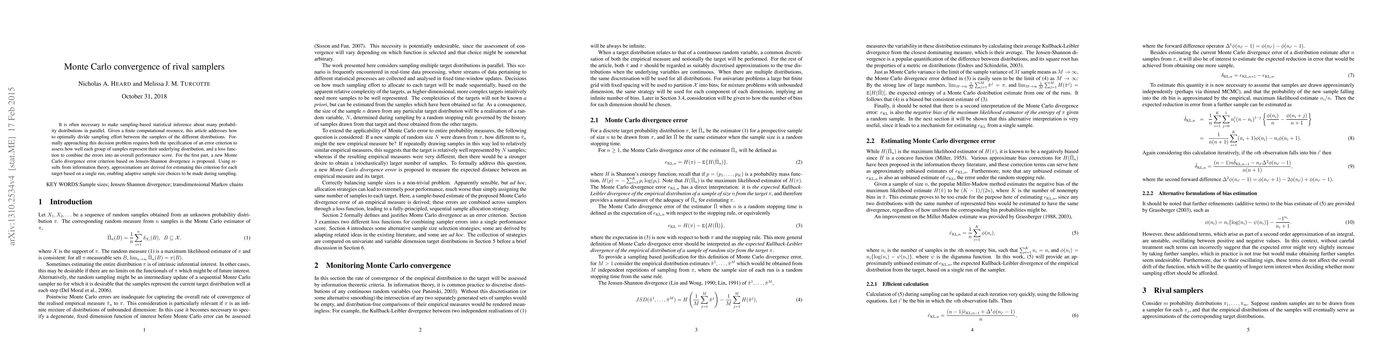 It is often necessary to make sampling-based statistical inference about many probability distributions in parallel. Given a finite computational resource, this article addresses how to optimally divide sampling effort between the samplers of the different distributions. Formally approaching this decision problem requires both the specification of an error criterion to assess how well each group of samples represent their underlying distribution, and a loss function to combine the errors into an overall performance score. For the first part, a new Monte Carlo divergence error criterion based on Jensen-Shannon divergence is proposed. Using results from information theory, approximations are derived for estimating this criterion for each target based on a single run, enabling adaptive sample size choices to be made during sampling.