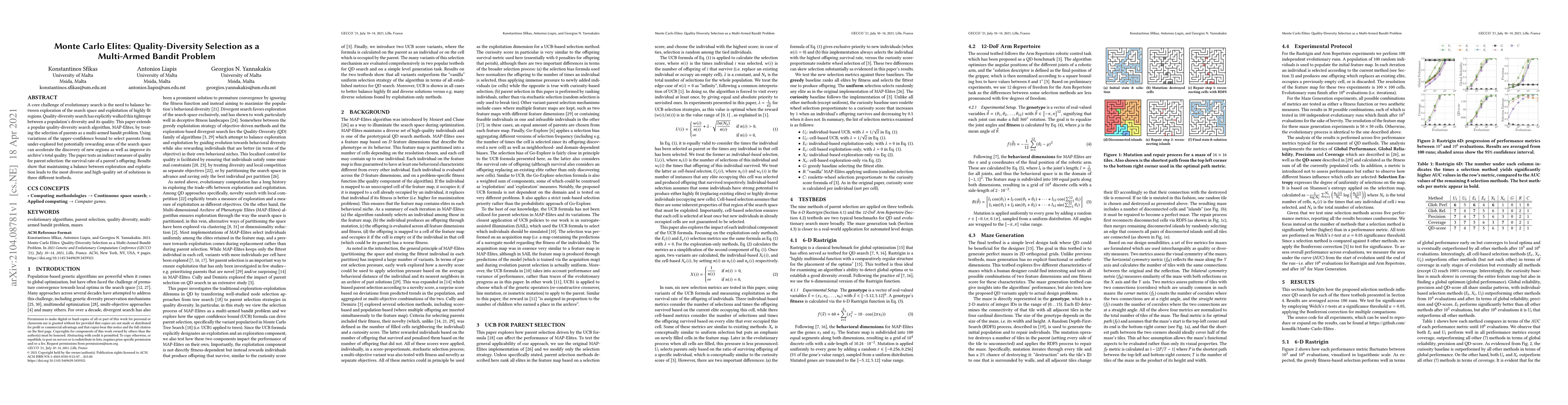 A core challenge of evolutionary search is the need to balance between exploration of the search space and exploitation of highly fit regions. Quality-diversity search has explicitly walked this tightrope between a population's diversity and its quality. This paper extends a popular quality-diversity search algorithm, MAP-Elites, by treating the selection of parents as a multi-armed bandit problem. Using variations of the upper-confidence bound to select parents from under-explored but potentially rewarding areas of the search space can accelerate the discovery of new regions as well as improve its archive's total quality. The paper tests an indirect measure of quality for parent selection: the survival rate of a parent's offspring. Results show that maintaining a balance between exploration and exploitation leads to the most diverse and high-quality set of solutions in three different testbeds.