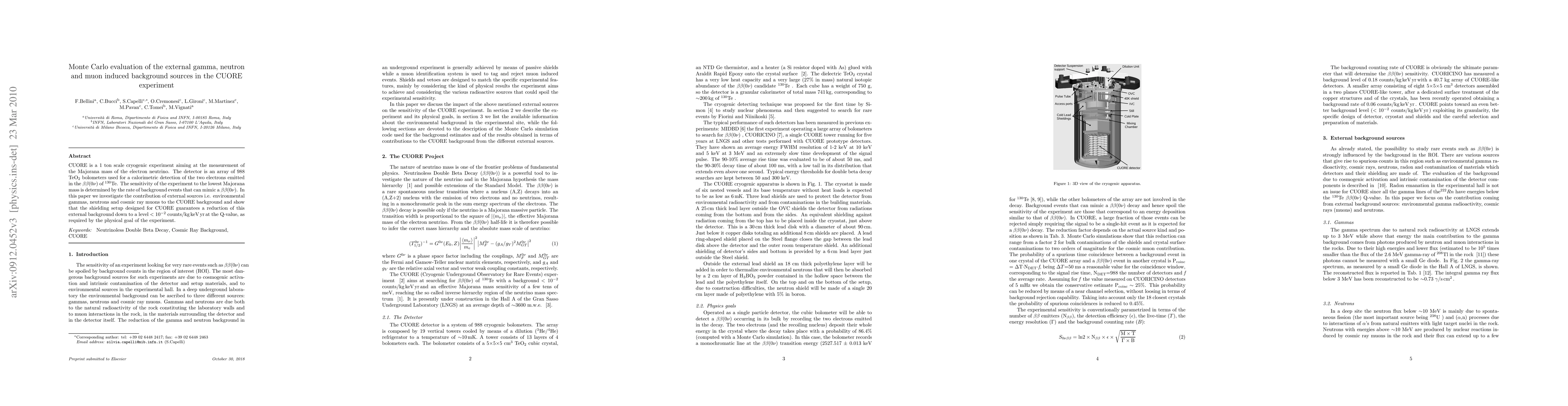 The CUORE experiment reduces background sources to a level <1.0E-02 c/keV/kg/y with its shielding setup, meeting the physical goal of measuring the Majorana mass of the electron neutrino.