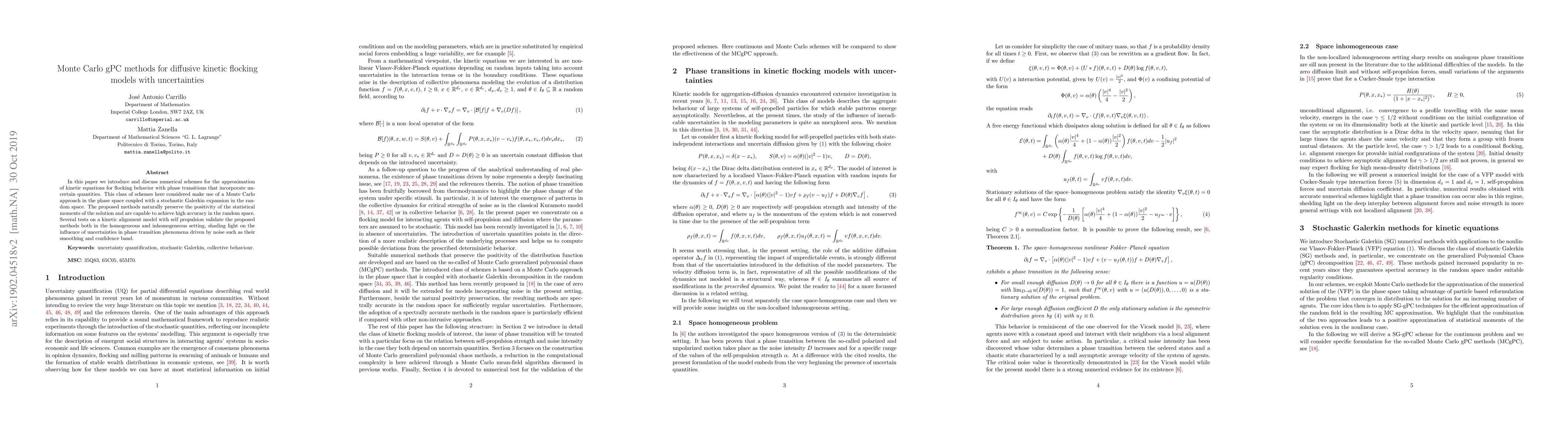 This paper proposes Monte Carlo gPC methods for approximating kinetic flocking models with uncertainties, combining a Monte Carlo approach in phase space and a stochastic Galerkin expansion in the random space to maintain solution positivity and achieve high accuracy. Tests on a kinetic alignment model demonstrate the methods' effectiveness in both homogeneous and inhomogeneous settings, highlighting the effects of uncertainties on noise-driven phase transitions.