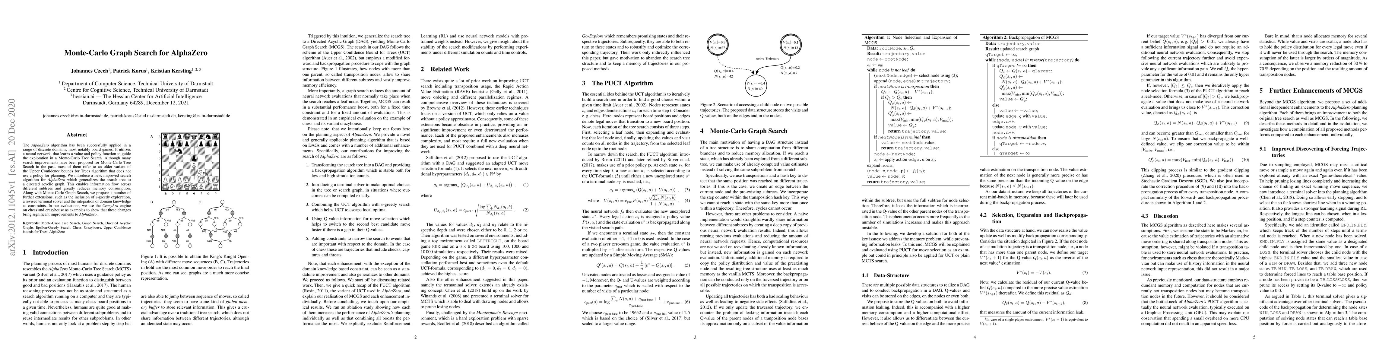 The AlphaZero algorithm introduces a Monte-Carlo Graph Search that generalizes the search tree to a directed acyclic graph, enhancing information flow and reducing memory usage. This new approach, along with extensions like Epsilon-greedy exploration and domain knowledge integration, significantly improves performance in chess and crazyhouse games.