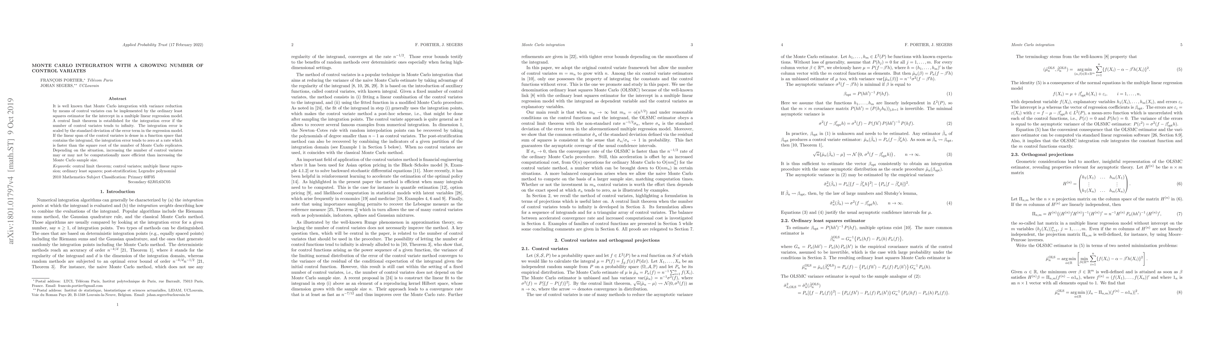 This paper explores Monte Carlo integration enhanced by control variates, establishing a central limit theorem for integration error as the number of control variates grows. It finds that the error rate decreases faster than the square root of Monte Carlo samples if the control variates' linear span is dense in the function space containing the integrand.