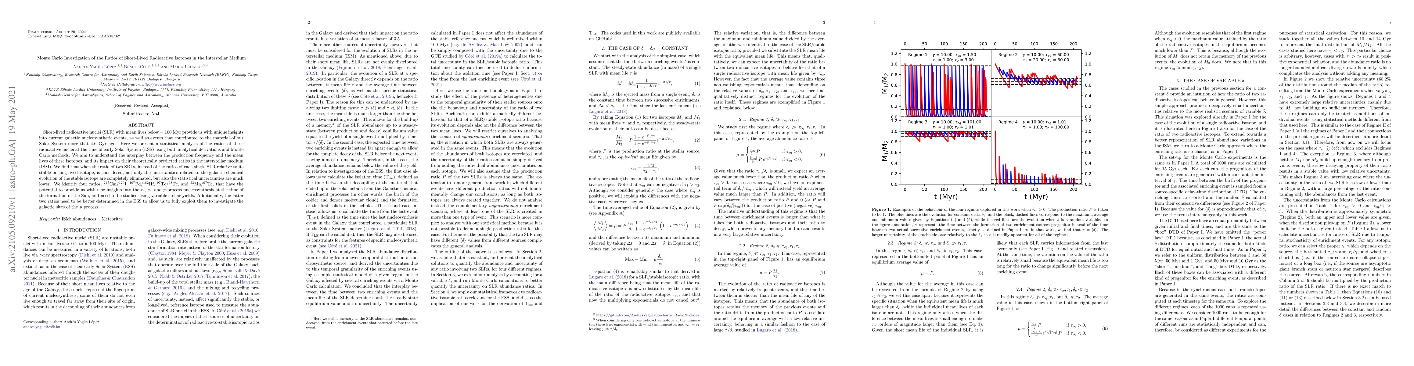 This paper uses Monte Carlo methods to analyze ratios of short-lived radioactive isotopes in the interstellar medium, aiming to understand their production and impact on nucleosynthesis. The study identifies four key isotope ratios that can reveal insights into nucleosynthetic processes during the early Solar System formation.