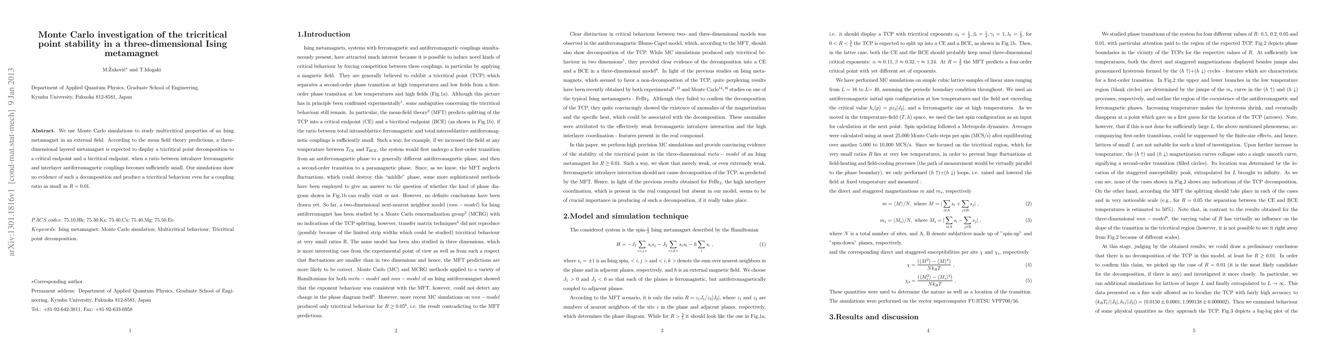 This paper uses Monte Carlo simulations to investigate the tricritical point in a three-dimensional Ising metamagnet, finding that it does not decompose into a critical and bicritical endpoint as predicted by mean field theory, even when the coupling ratio is very small. The simulations confirm tricritical behavior persists.