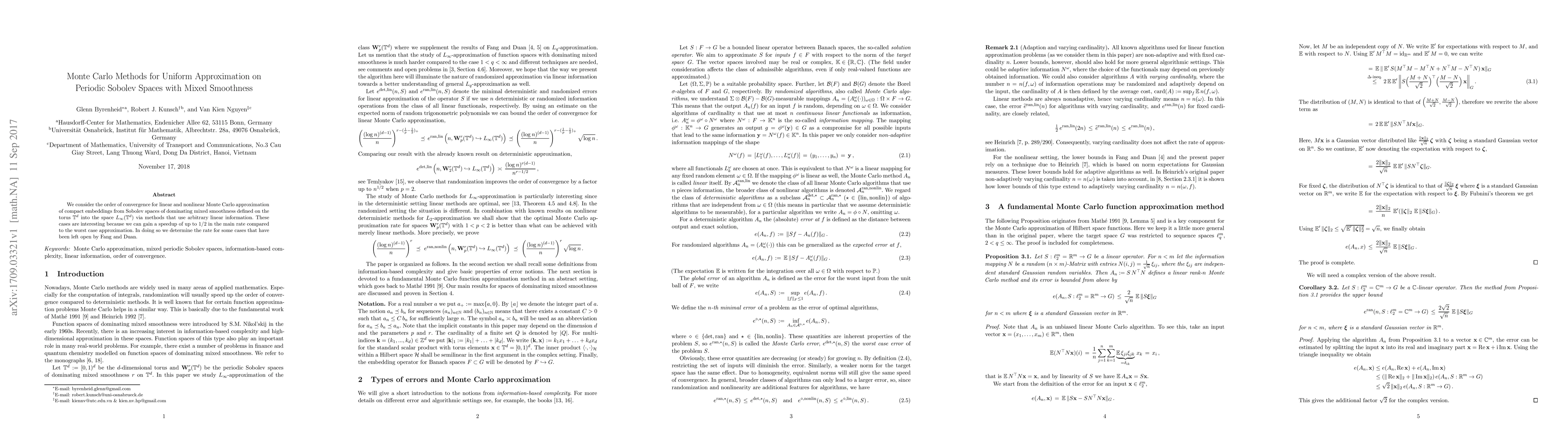 This paper investigates the convergence rates of Monte Carlo methods for approximating compact embeddings from mixed smoothness Sobolev spaces on the torus into $L_{\infty}$ space, achieving a potential $1/2$ speedup over worst-case approximations. It resolves some previously open questions regarding these rates.