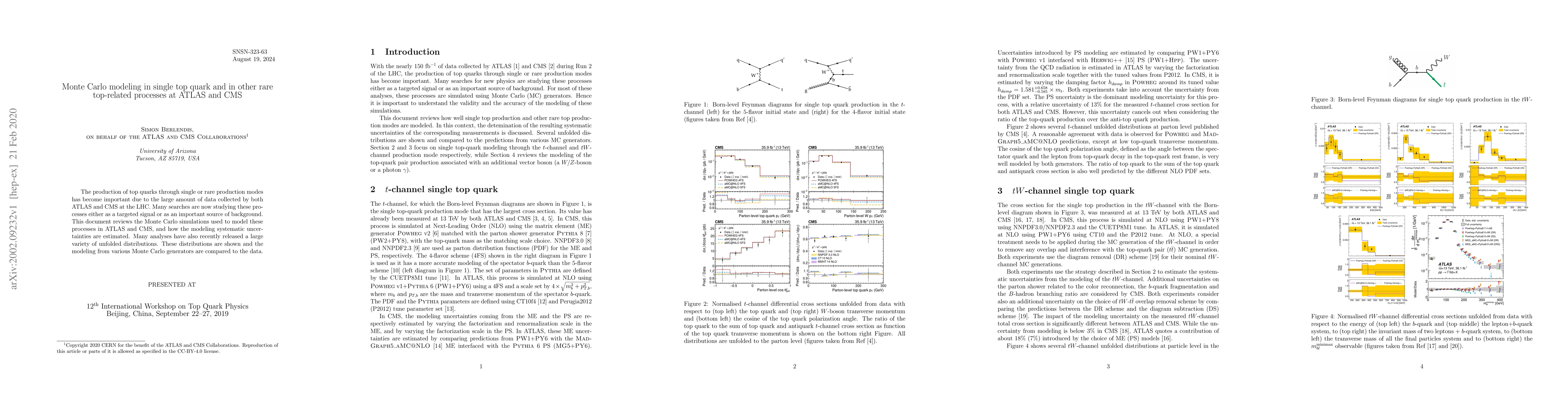 This paper reviews Monte Carlo simulations used in ATLAS and CMS to model single top quark and rare top-related processes, focusing on systematic uncertainties and comparisons of modeling from different generators against unfolded distributions from recent analyses.