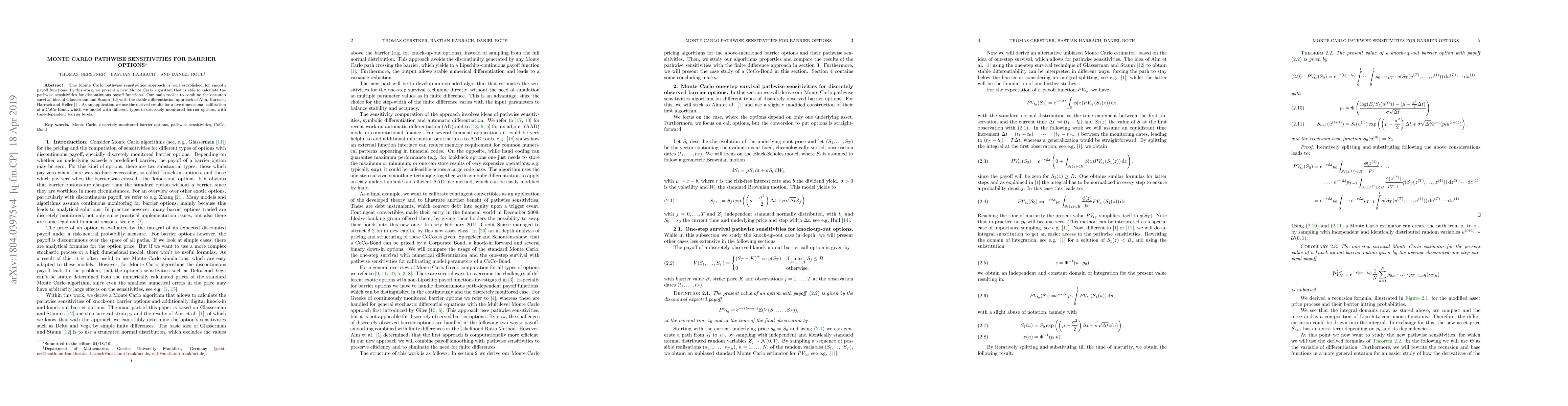 This paper introduces a novel Monte Carlo algorithm for calculating pathwise sensitivities of barrier options with discontinuous payoffs, combining Glasserman and Staum's one-step survival idea with Alm et al.'s stable differentiation approach. The method is applied to calibrate a CoCo-Bond modeled with discretely monitored barrier options.