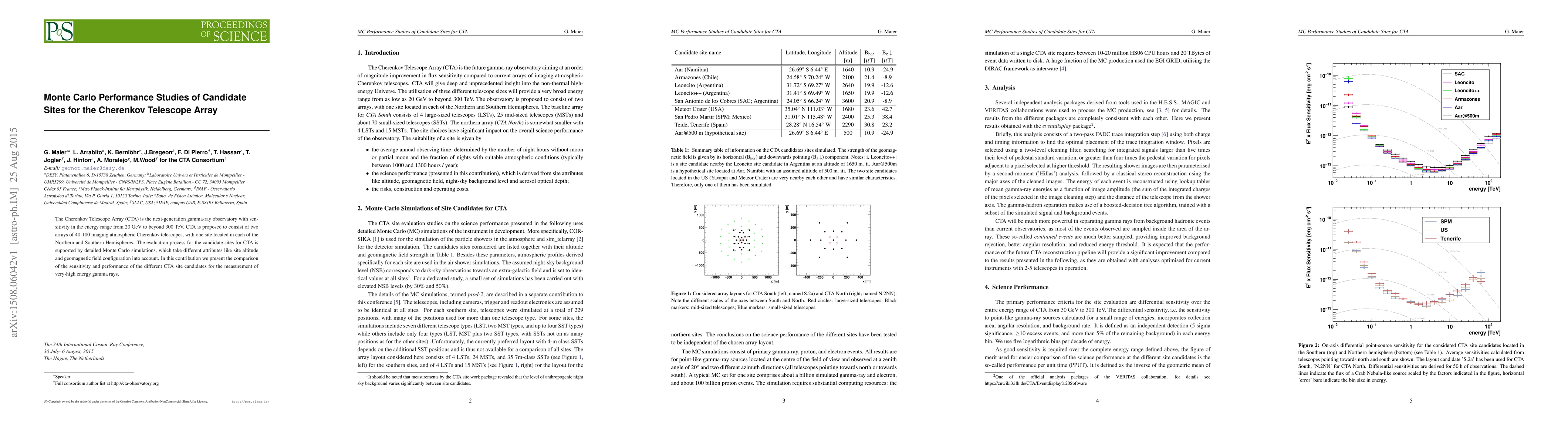 This paper presents Monte Carlo simulations comparing the performance of candidate sites for the Cherenkov Telescope Array (CTA), focusing on sensitivity and attributes like altitude and geomagnetic field configuration. The study aims to identify optimal locations for the Northern and Southern Hemisphere arrays of the next-generation gamma-ray observatory.