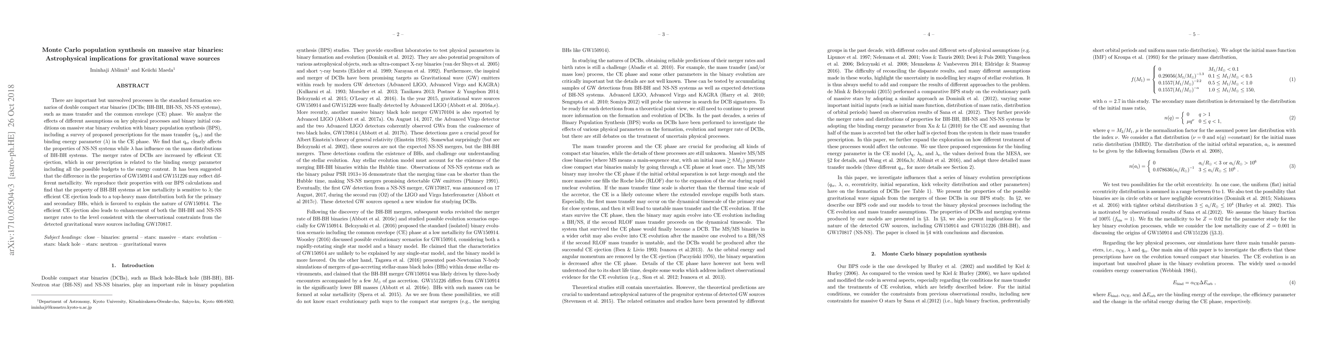 There are important but unresolved processes in the standard formation scenarios of double compact star binaries (DCBs; BH-BH, BH-NS, NS-NS systems), such as mass transfer and the common envelope (CE) phase. We analyze the effects of different assumptions on key physical processes and binary initial conditions on massive star binary evolution with binary population synthesis (BPS), including a survey of proposed prescriptions for the mass transfer ($\rm q_{\rm cr}$) and the binding energy parameter ($\lambda$) in the CE phase. We find that $\rm q_{\rm cr}$ clearly affects the properties of NS-NS systems while $\lambda$ has influence on the mass distributions of BH-BH systems. The merger rates of DCBs are increased by efficient CE ejection, which in our prescription is related to the binding energy parameter including all the possible budgets to the energy content. It has been suggested that the difference in the properties of GW150914 and GW151226 may reflect different metallicity. We reproduce their properties with our BPS calculations and find that the property of BH-BH systems at low metallicity is sensitive to $\lambda$; the efficient CE ejection leads to a top-heavy mass distribution both for the primary and secondary BHs, which is favored to explain the nature of GW150914. The efficient CE ejection also leads to enhancement of both the BH-BH and NS-NS merger rates to the level consistent with the observational constraints from the detected gravitational wave sources including GW170817.