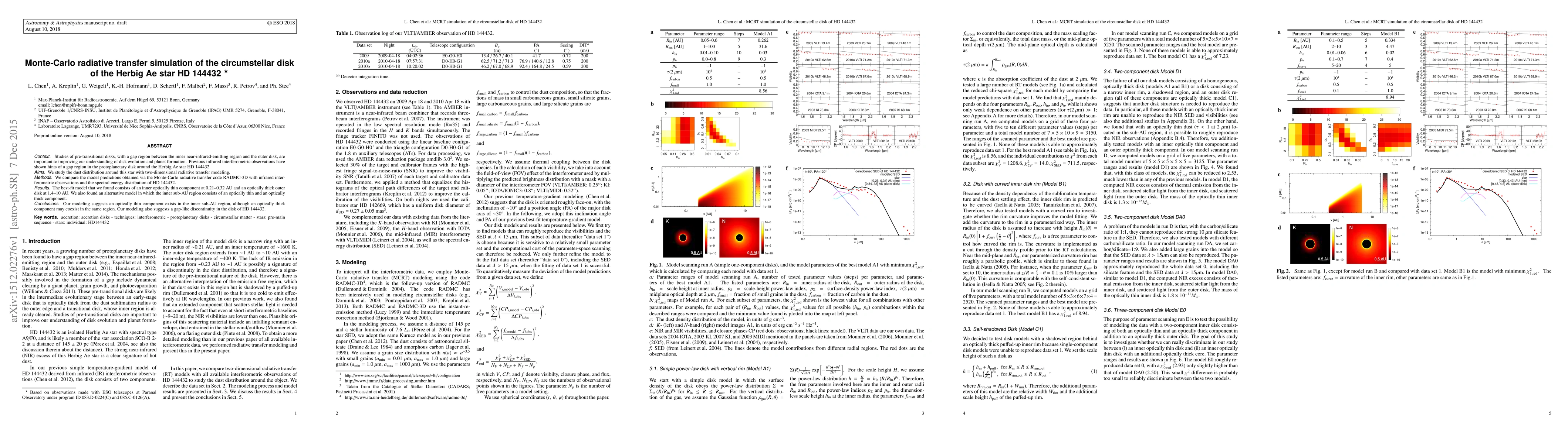 Researchers used computer simulations to study the disk of a young star called HD 144432, finding an optically thin inner region with a gap-like discontinuity, and an optically thick outer disk, challenging previous observations.