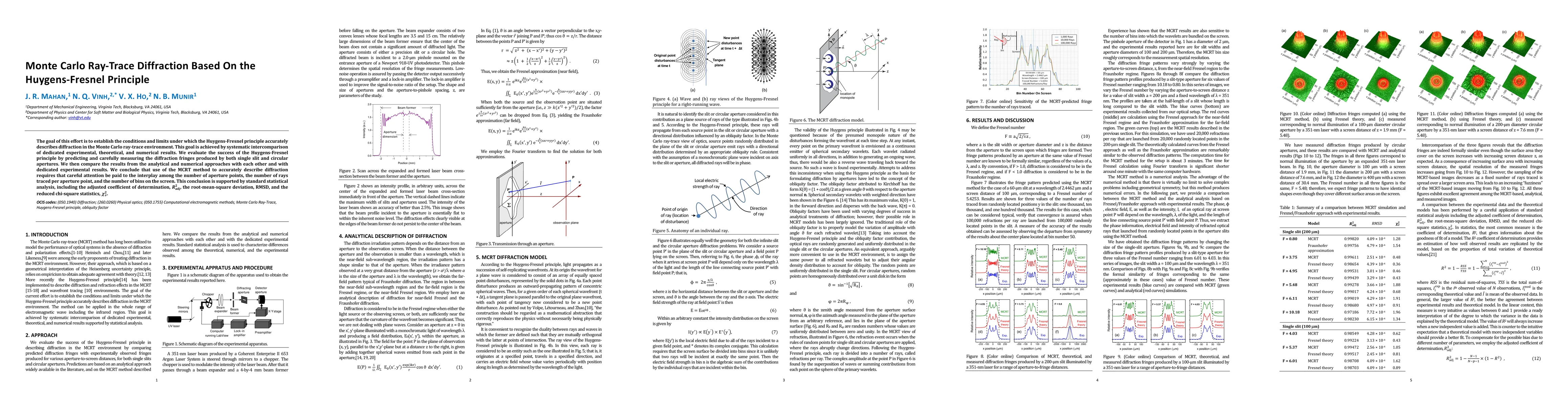 The paper presents a Monte Carlo ray-trace diffraction model based on the Huygens-Fresnel principle, validated through intercomparison of experimental, theoretical, and numerical results.