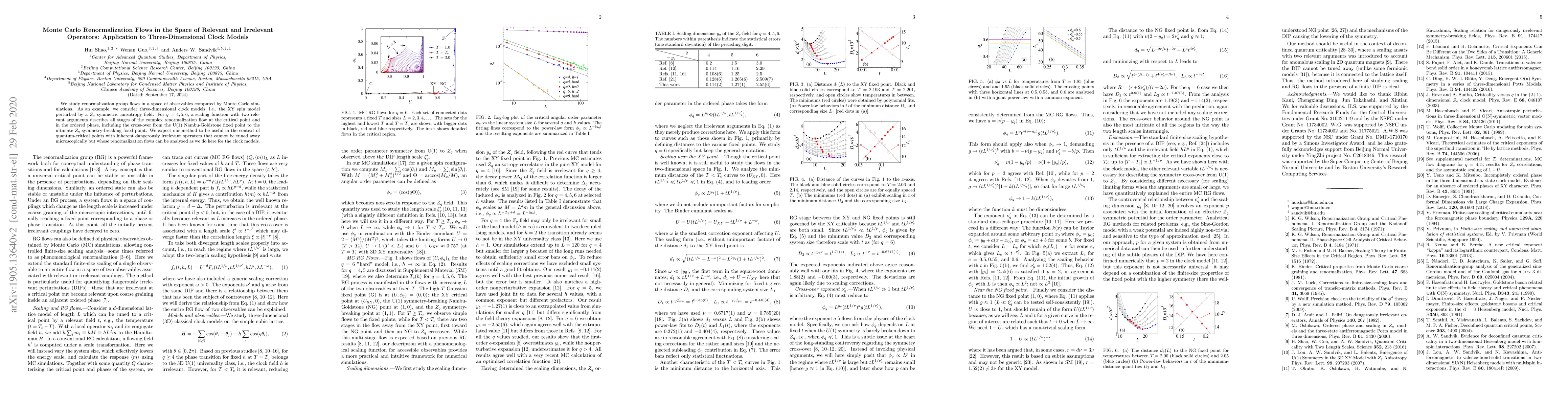 We present a way to visualize and quantify renormalization group flows in a space of observables computed using Monte Carlo simulations. We apply the method to classical three-dimensional clock models, i.e., the planar (XY) spin model perturbed by a $Z_q$ symmetric anisotropy field. The method performs significantly better than standard techniques for determining the scaling dimension $y_q$ of the $Z_q$ field at the critical point if it is irrelevant ($q\ge4$). Furthermore, we analyze all stages of the complex renormalization flow, including the cross-over from the U(1) Nambu-Goldstone fixed point to the ultimate $Z_q$ symmetry-breaking fixed point due to the relevance of the $Z_q$ field inside the ordered phase. We expect our method to be particularly useful in the context of quantum-critical points with inherent dangerously irrelevant operators that cannot be tuned away microscopically but whose renormalization flows can be analyzed exactly as we do here for the clock models.
