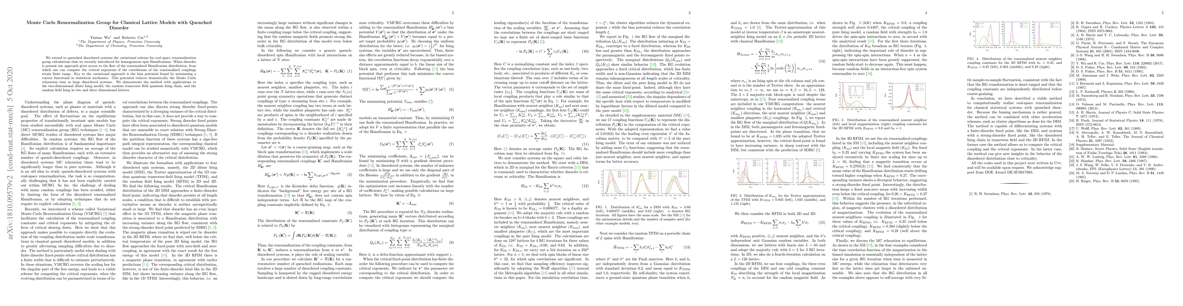This paper introduces a Monte Carlo renormalization group method for analyzing quenched disordered systems, extending a previously developed variational scheme for homogeneous systems. The method efficiently computes critical exponents by minimizing a convex functional, significantly reducing relaxation time in large disordered systems, and is demonstrated through applications to various models including the two-dimensional dilute Ising model and random field Ising models.