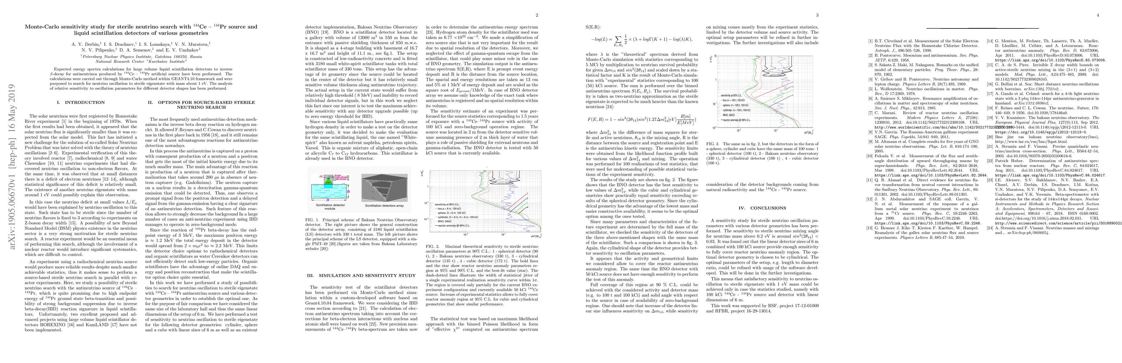 A Monte-Carlo study was conducted to investigate the sensitivity of liquid scintillation detectors in searching for sterile neutrinos using $^{144}$Ce-$^{144}$Pr as a source. The results show varying sensitivities based on detector geometry.