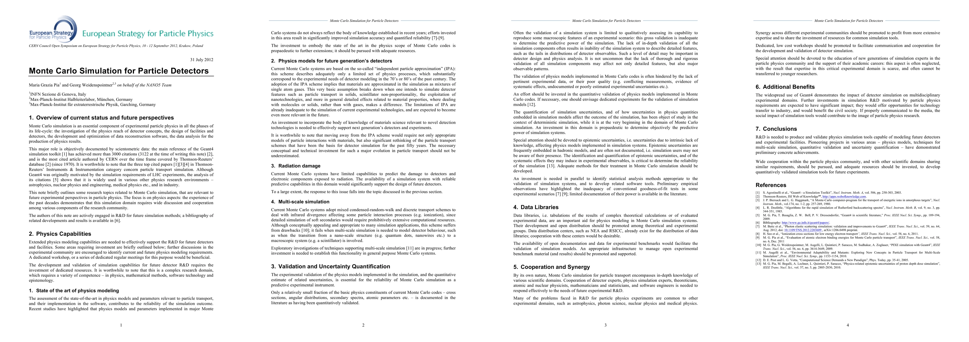This paper explores the role of Monte Carlo simulations in particle physics, emphasizing advancements in simulation techniques for detector design and data analysis. It highlights the need for conceptual progress, material science integration, and multi-scale simulation capabilities to enhance future detector performance and predictive power.