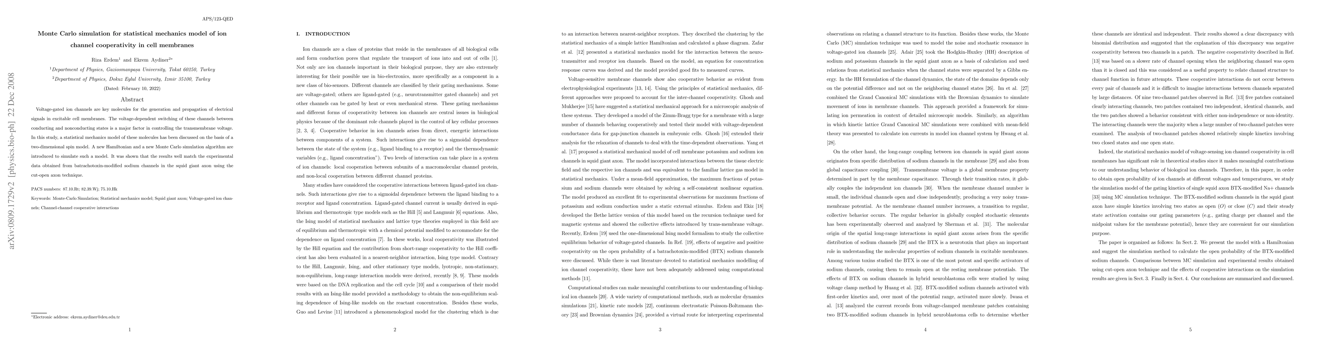 This paper introduces a statistical mechanics model of voltage-gated ion channels using a two-dimensional spin model and a new Monte Carlo simulation algorithm. The results from the simulation effectively match experimental data from batrachotoxin-modified sodium channels in squid giant axons.