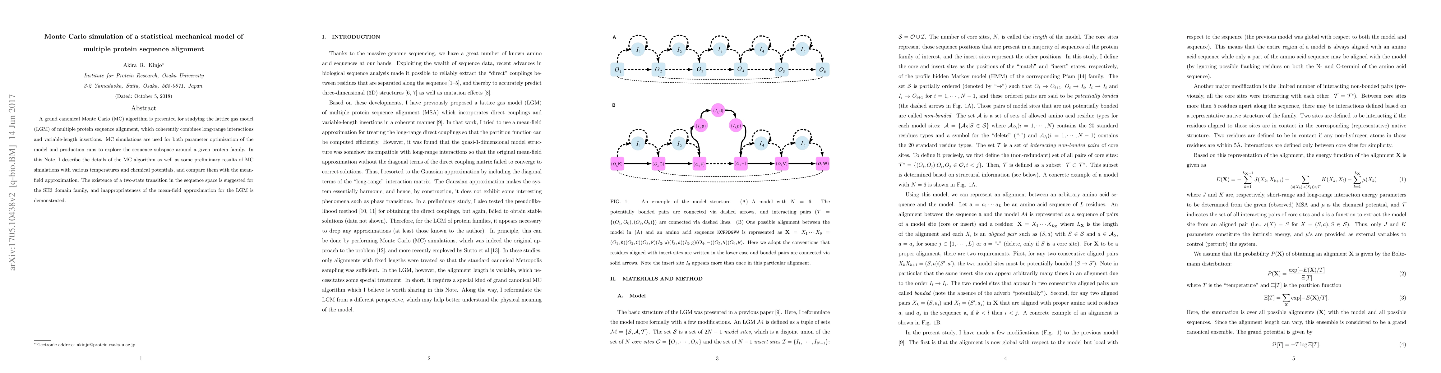 This paper presents a grand canonical Monte Carlo algorithm for studying a lattice gas model of multiple protein sequence alignment, combining long-range interactions and variable-length insertions. Preliminary results suggest a two-state transition in the SH3 domain family and show the inadequacies of the mean-field approximation for the model.