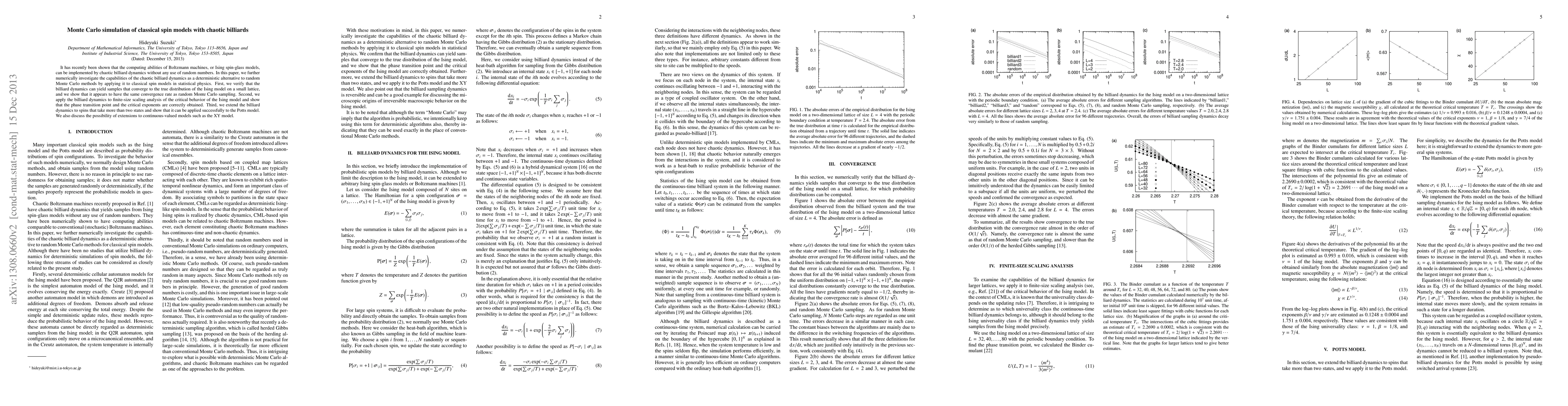 Researchers used chaotic billiard dynamics to simulate classical spin models in statistical physics, achieving convergence rates comparable to random Monte Carlo methods, with successful applications to the Ising model and the Potts model.