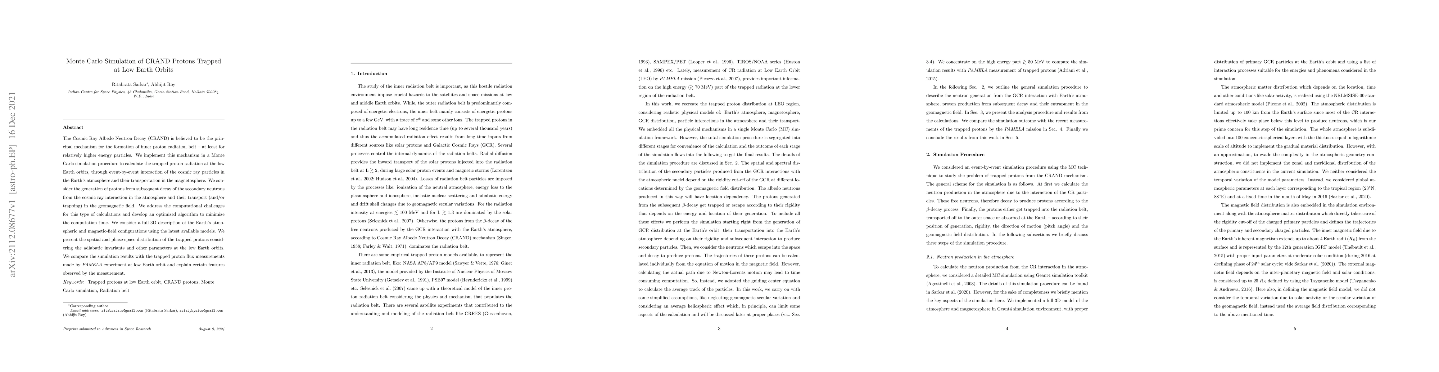 This paper uses a Monte Carlo simulation to model how CRAND particles interact with the Earth's atmosphere and magnetosphere, producing trapped protons at low Earth orbits. The results compare favorably with PAMELA experiment measurements, shedding light on the physics behind the formation of inner proton radiation belts.
