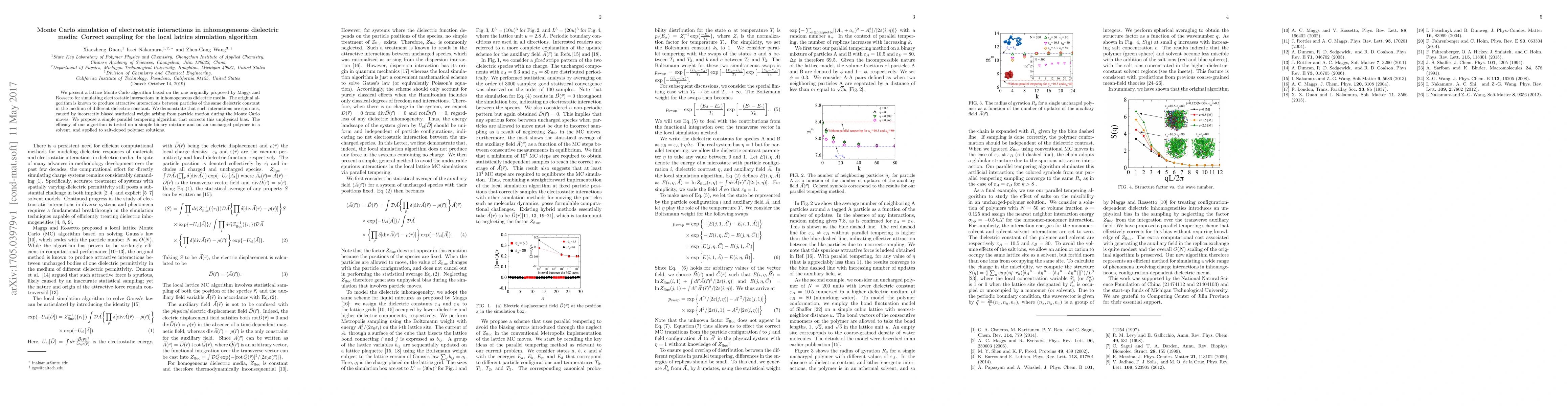 This paper presents a lattice Monte Carlo algorithm to simulate electrostatic interactions in inhomogeneous dielectric media, correcting spurious attractive interactions caused by biased statistical weights. The proposed parallel tempering method is validated through simulations of binary mixtures and salt-doped polymer solutions.
