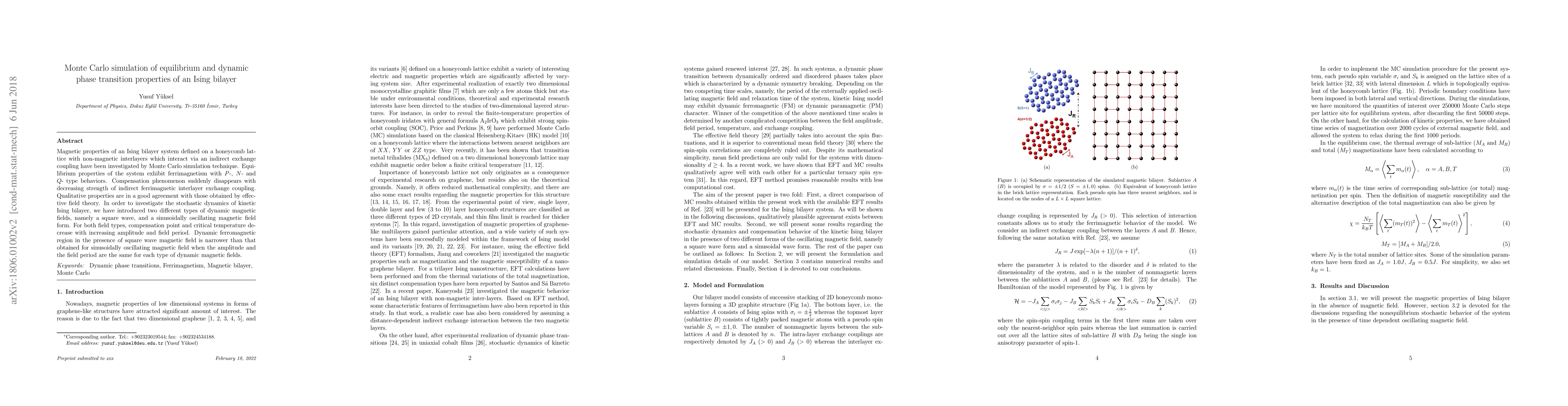 Magnetic properties of an Ising bilayer system defined on a honeycomb lattice with non-magnetic interlayers which interact via an indirect exchange coupling have been investigated by Monte Carlo simulation technique. Equilibrium properties of the system exhibit ferrimagnetism with $P$-, $N$- and $Q$- type behaviors. Compensation phenomenon suddenly disappears with decreasing strength of indirect ferrimagnetic interlayer exchange coupling. Qualitative properties are in a good agreement with those obtained by effective field theory. In order to investigate the stochastic dynamics of kinetic Ising bilayer, we have introduced two different types of dynamic magnetic fields, namely a square wave, and a sinusoidally oscillating magnetic field form. For both field types, compensation point and critical temperature decrease with increasing amplitude and field period. Dynamic ferromagnetic region in the presence of square wave magnetic field is narrower than that obtained for sinusoidally oscillating magnetic field when the amplitude and the field period are the same for each type of dynamic magnetic fields.