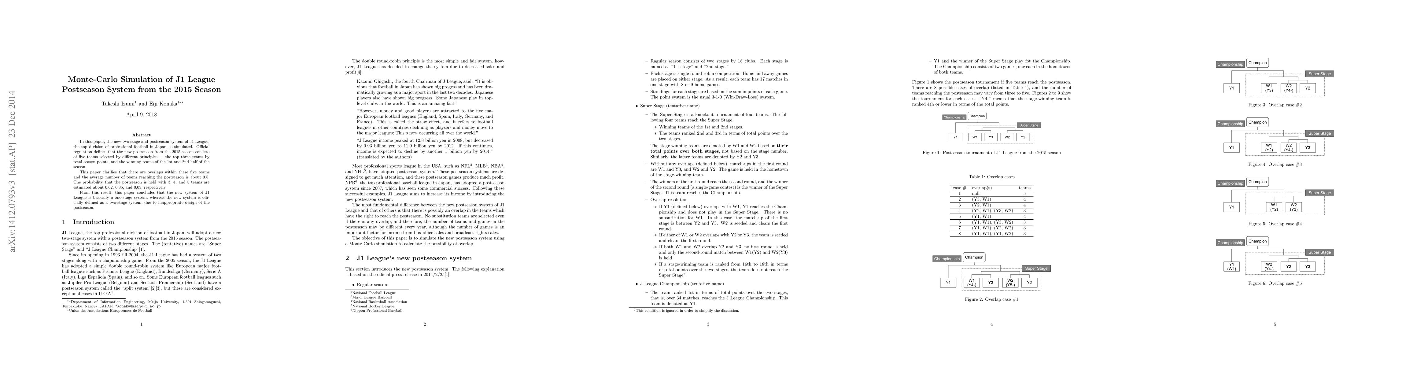 In this paper, the new two stage and postseason system of J1 League, the top division of professional football in Japan, is simulated. Official regulation defines that the new postseason from the 2015 season consists of five teams selected by different principles --- the top three teams by total season points, and the winning teams of the 1st and 2nd half of the season. This paper clarifies that there are overlaps within these five teams and the average number of teams reaching the postseason is about 3.5. The probability that the postseason is held with 3, 4, and 5 teams are estimated about 0.62, 0.35, and 0.03, respectively. From this result, this paper concludes that the new system of J1 League is basically a one-stage system, whereas the new system is officially defined as a two-stage system, due to inappropriate design of the postseason.