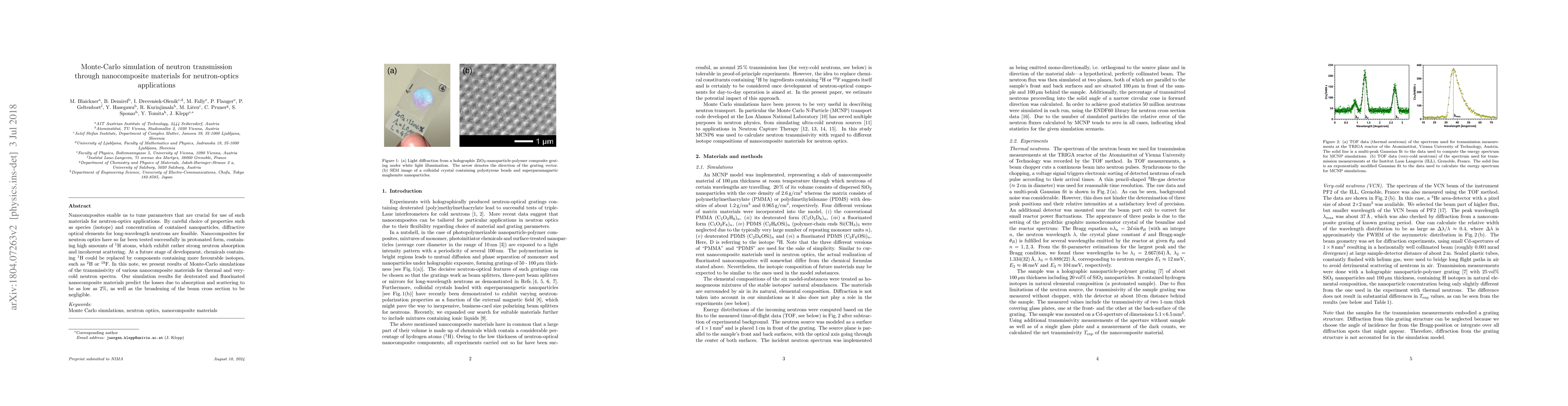 This paper presents Monte-Carlo simulations of neutron transmission through nanocomposite materials for neutron-optics applications, showing that replacing hydrogen with more favorable isotopes like deuterium or fluorine can significantly reduce absorption and scattering losses to about 2% for very-cold neutrons, compared to experimental transmission data.