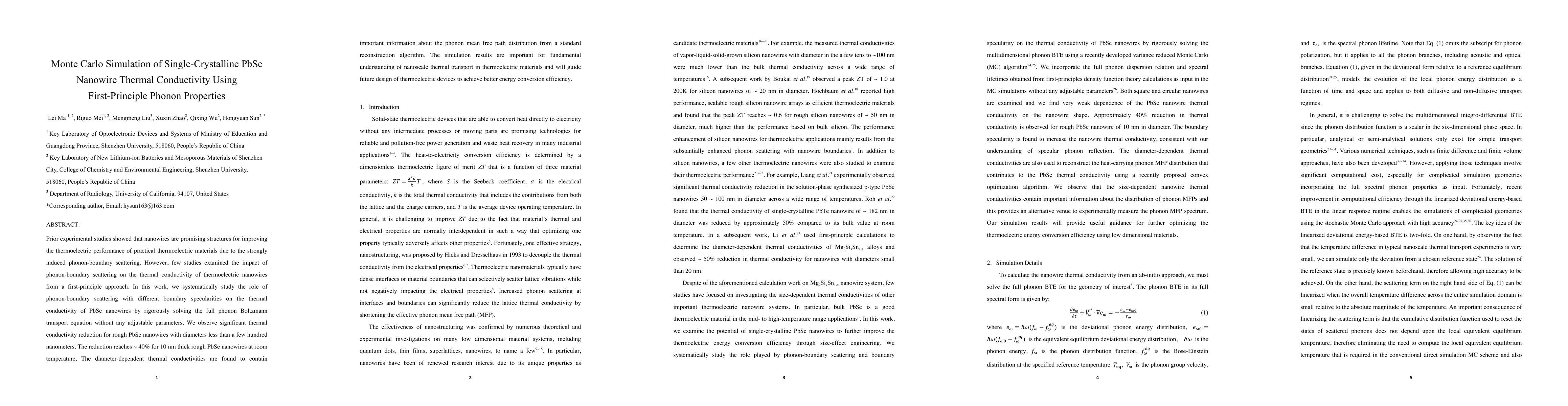 This study uses a first-principle approach to simulate the thermal conductivity of PbSe nanowires with different boundary specularities, finding significant reductions in conductivity for rough nanowires, particularly those less than 10 nm thick.