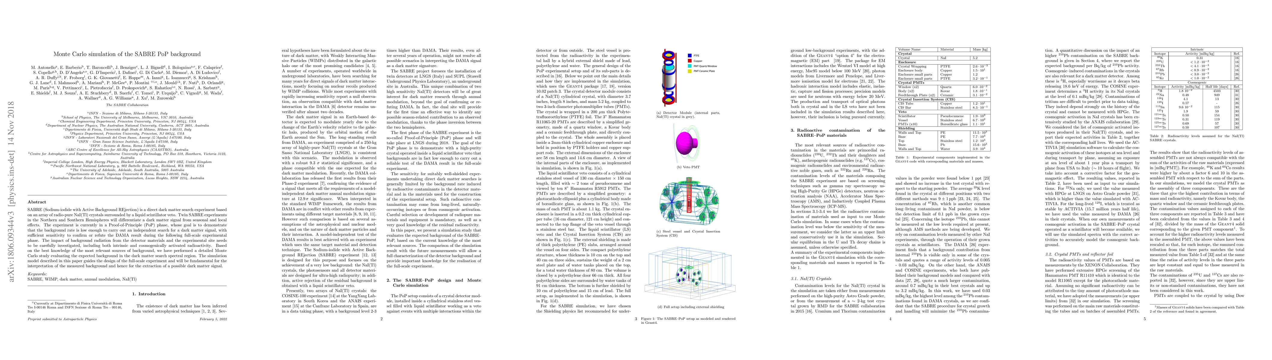 A Monte Carlo simulation studied background radiation in the SABRE dark matter experiment, guiding its full-scale design and enabling the detection of potential dark matter signals.