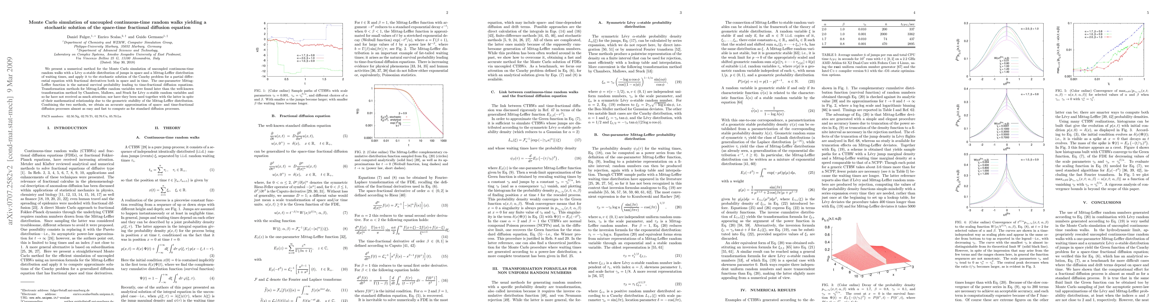 This paper proposes a Monte Carlo simulation method for uncoupled continuous-time random walks to solve the space-time fractional diffusion equation, combining the Levy alpha-stable distribution and the Mittag-Leffler distribution for jumps and waiting times respectively. The method provides an efficient approximation for fractional diffusion processes.