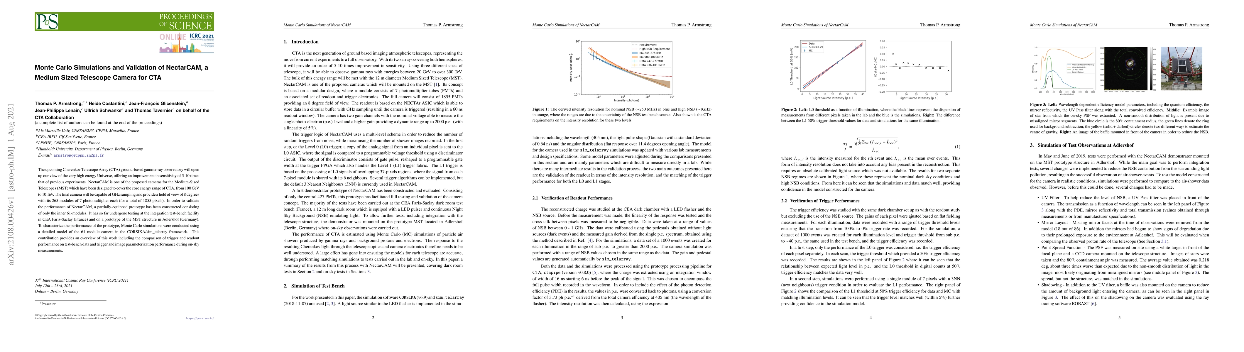 This paper details Monte Carlo simulations used to validate NectarCAM, a proposed camera for the Medium-Sized Telescopes in the Cherenkov Telescope Array. The simulations, conducted using a prototype consisting of 61 modules, aim to characterize the camera's performance, comparing results from test-bench and on-sky measurements.
