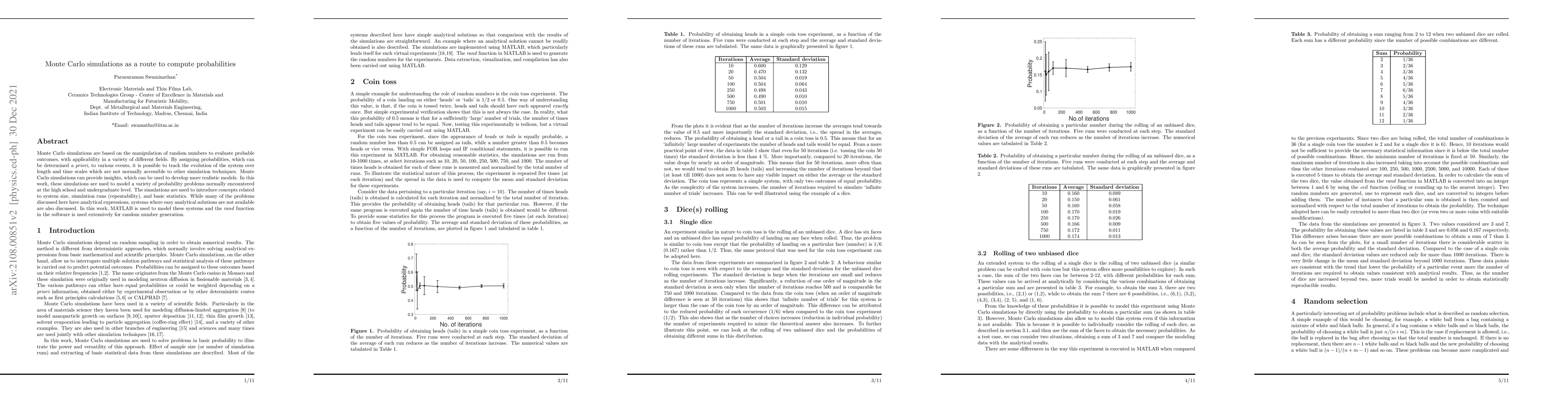 This paper uses Monte Carlo simulations to model probability problems, providing insights into system behavior over long time scales. It introduces concepts such as system size, simulation runs, and basic statistics, making it accessible to high school and undergraduate students.