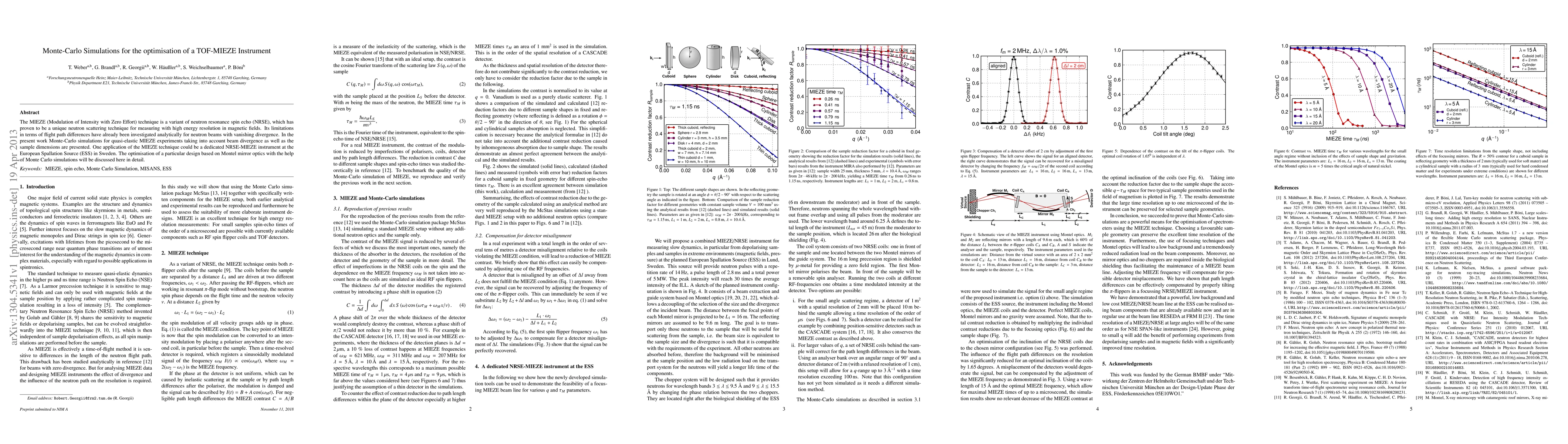 This paper presents Monte-Carlo simulations optimizing a TOF-MIEZE instrument, a variant of neutron resonance spin echo technique, to improve its performance in quasi-elastic experiments by accounting for beam divergence and sample dimensions. The study focuses on the design optimization using Monte Carlo methods for a potential instrument at the European Spallation Source.