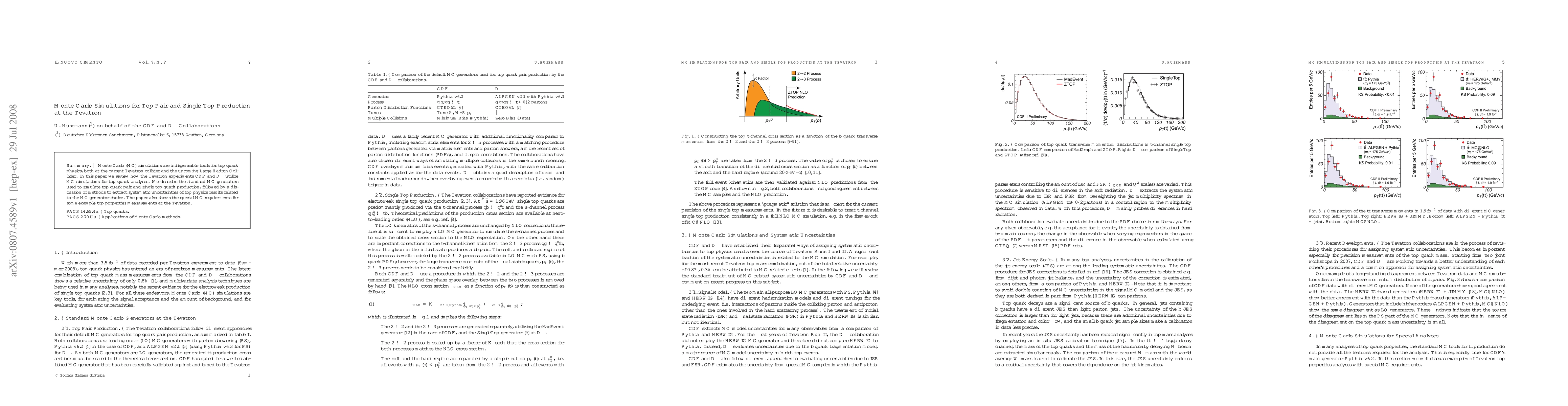 This paper reviews the use of Monte Carlo simulations in top quark analyses at the Tevatron, detailing standard generators for top pair and single top production. It also discusses methods for extracting systematic uncertainties related to MC generator choices and presents specific MC requirements for certain top properties measurements.