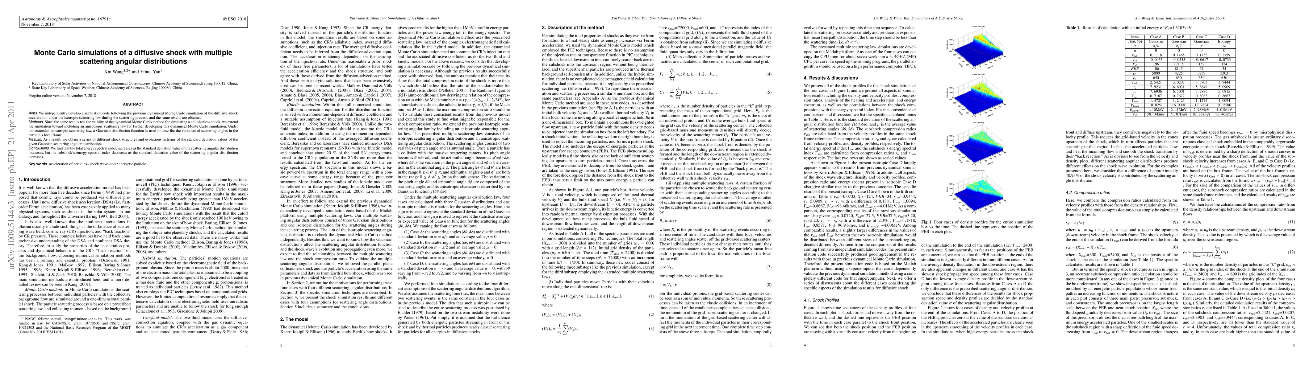 This paper develops a Monte Carlo simulation to study diffusive shock acceleration under both isotropic and anisotropic scattering laws. The simulation confirms the validity of the method and reveals that higher scattering angle variability leads to a steeper total energy spectral index but a shallower subshock energy spectral index.