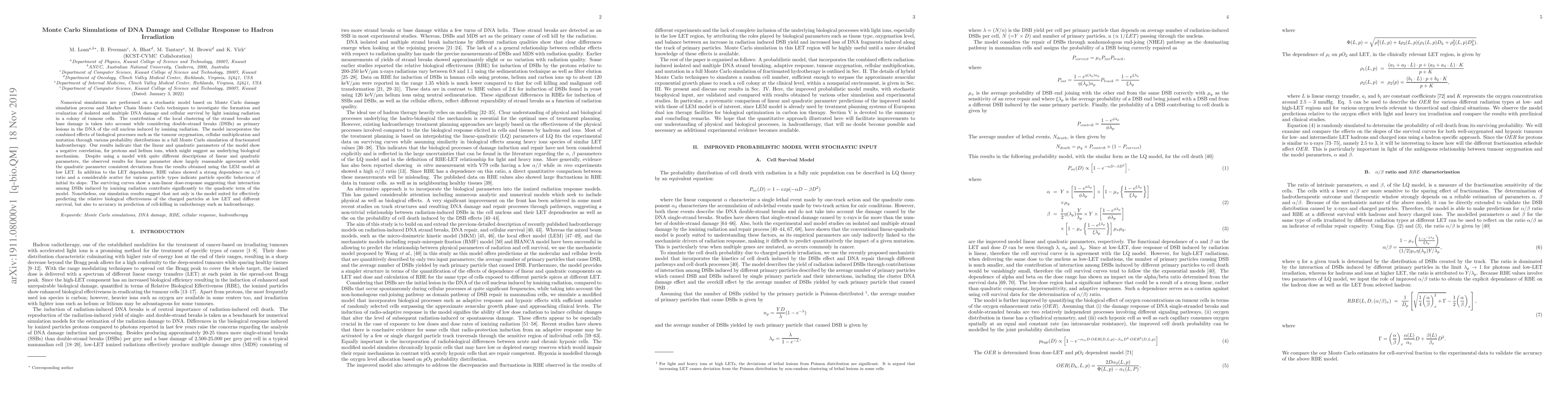 The paper presents an advanced Monte Carlo simulation model for predicting cell survival following DNA damage induced by hadron irradiation, incorporating various biological processes.