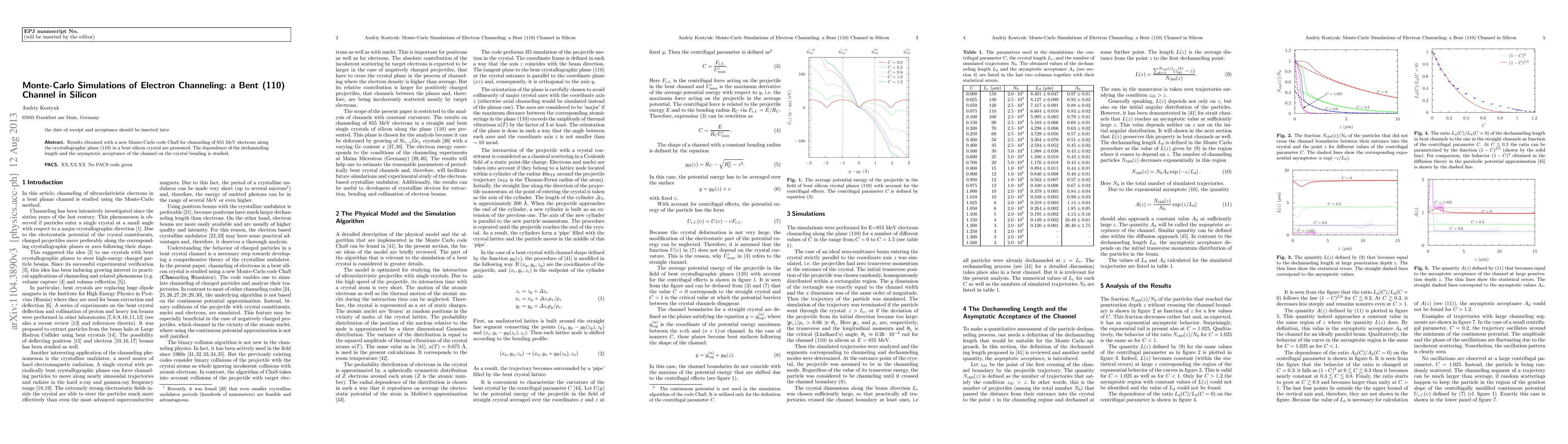Results obtained with a new Monte-Carlo code ChaS for channeling of 855 MeV electrons along the crystallographic plane (110) in a bent silicon crystal are presented. The dependence of the dechanneling length and the asymptotic acceptance of the channel on the crystal bending is studied.
