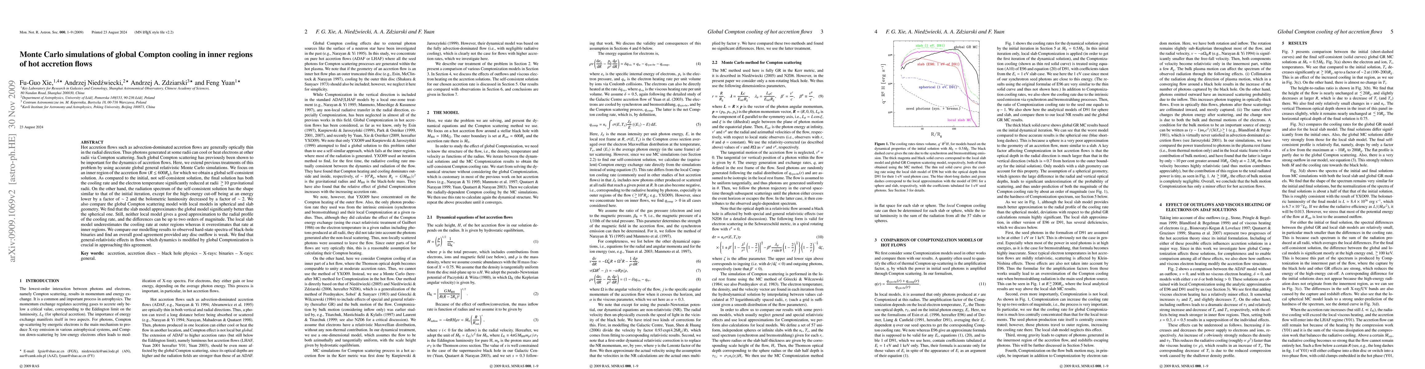 This paper uses Monte Carlo simulations to study global Compton cooling in inner regions of hot accretion flows, finding that self-consistent solutions significantly reduce cooling rates and electron temperatures compared to initial models. The study also reveals that local models, especially slab geometry, provide a better approximation than spherical models but still show significant discrepancies in cooling rate profiles.