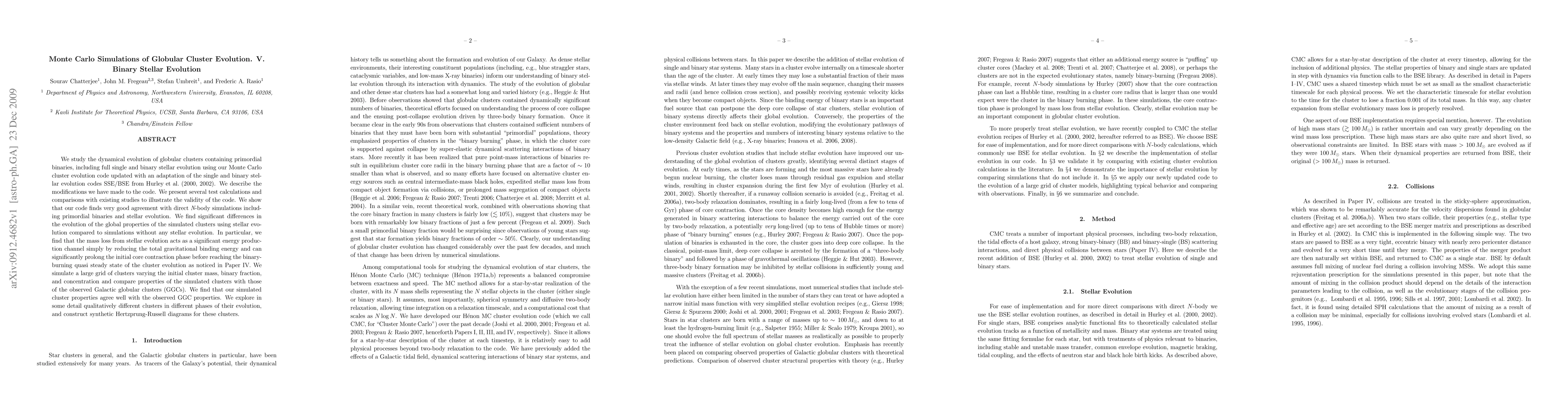 This paper uses Monte Carlo simulations to study the evolution of globular clusters with primordial binaries, incorporating detailed single and binary stellar evolution. The authors show that their updated code aligns well with N-body simulations and that stellar evolution significantly impacts cluster dynamics, prolonging the initial core contraction phase. The simulated clusters' properties match observed Galactic globular clusters, suggesting the importance of stellar evolution in cluster dynamics.