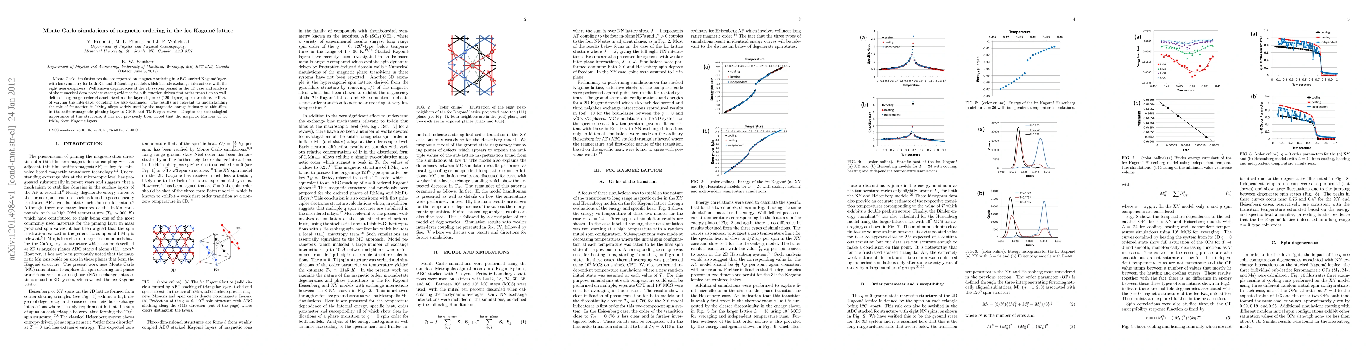 This paper reports Monte Carlo simulations revealing a fluctuation-driven first-order transition to a layered $q=0$ spin structure in fcc Kagome lattice magnetic ordering, relevant for understanding the magnetic properties of IrMn$_3$ alloys used in magnetic storage technology. The study highlights the role of frustration in these materials and examines the effects of varying inter-layer coupling.