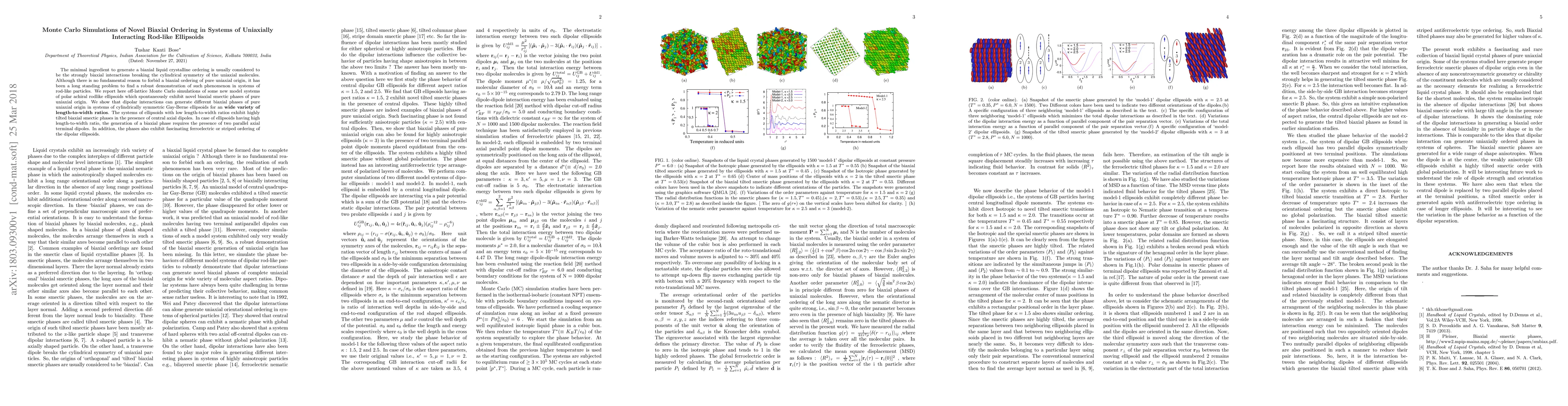 Researchers used Monte Carlo simulations to show that certain rod-like particles with dipolar interactions can exhibit novel biaxial ordering without strongly biaxial interactions, leading to new insights into liquid crystal phases.