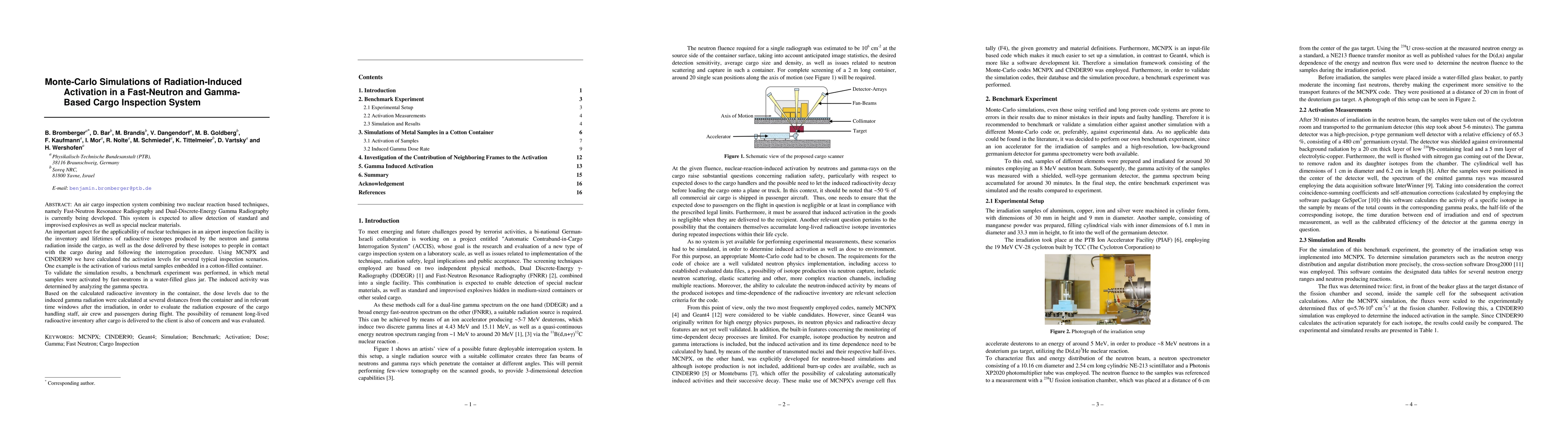 This paper investigates the radiation-induced activation in a cargo inspection system using Monte-Carlo simulations to determine the radioactive inventory and dose levels from fast-neutron and gamma radiation. The study validates simulation results with experimental data and assesses the potential long-term radiation exposure for personnel and passengers.