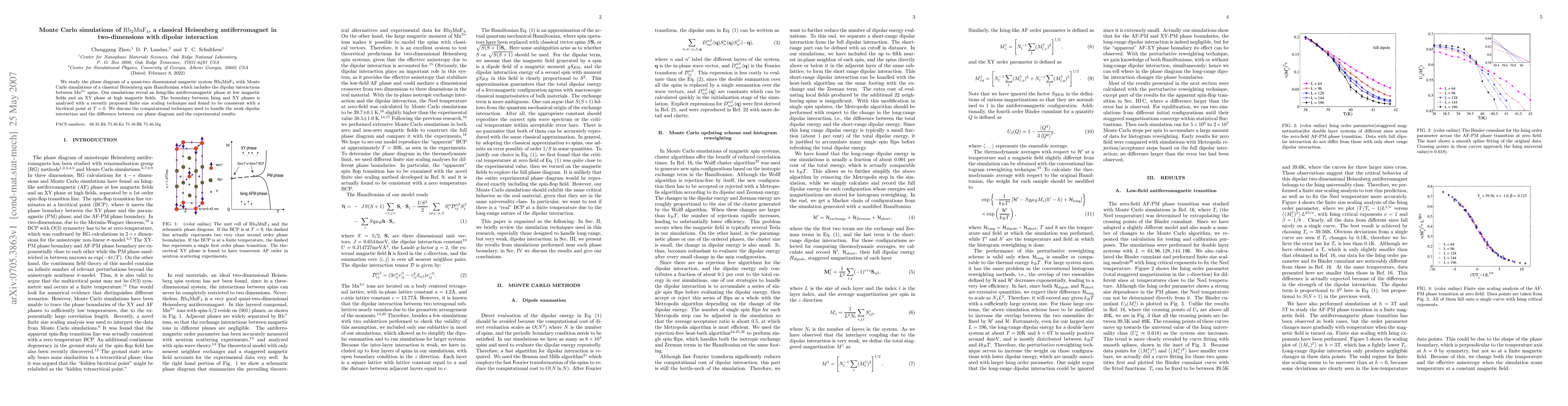 We study the phase diagram of a quasi-two dimensional magnetic system ${\rm Rb_2MnF_4}$ with Monte Carlo simulations of a classical Heisenberg spin Hamiltonian which includes the dipolar interactions between ${\rm Mn}^{2+}$ spins. Our simulations reveal an Ising-like antiferromagnetic phase at low magnetic fields and an XY phase at high magnetic fields. The boundary between Ising and XY phases is analyzed with a recently proposed finite size scaling technique and found to be consistent with a bicritical point at T=0. We discuss the computational techniques used to handle the weak dipolar interaction and the difference between our phase diagram and the experimental results.