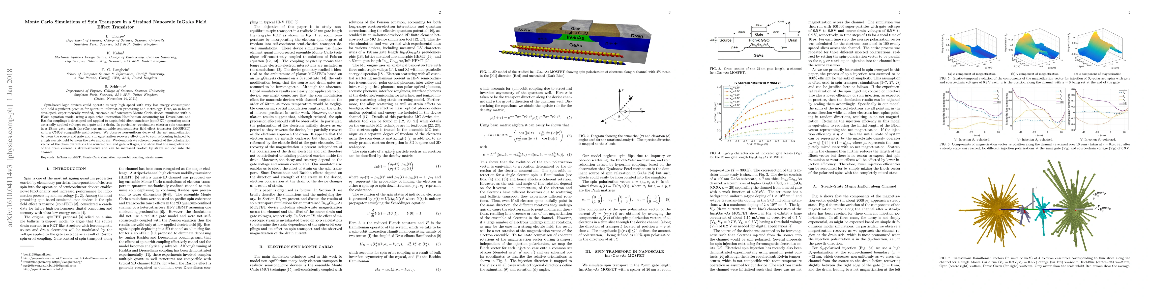 Researchers simulated spin transport in a nanoscale InGaAs transistor, discovering strain-sensitive magnetization that can be controlled via gate and drain voltages.