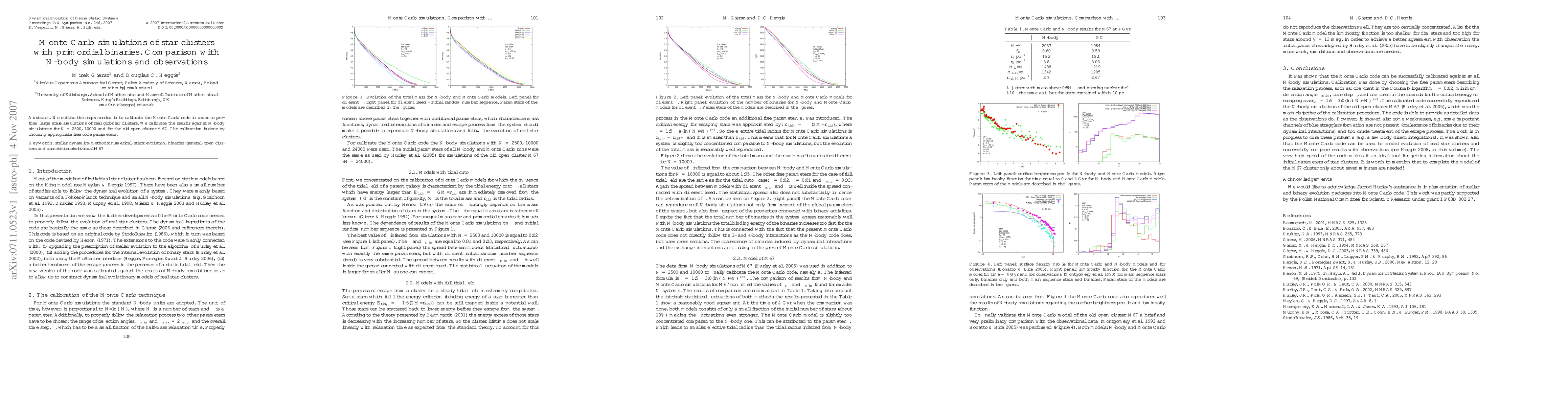 This paper details the calibration of a Monte Carlo code for simulating star clusters, focusing on primordial binaries. It compares the Monte Carlo results with $N$-body simulations for various cluster sizes and the old open cluster M67 to validate the code's accuracy.