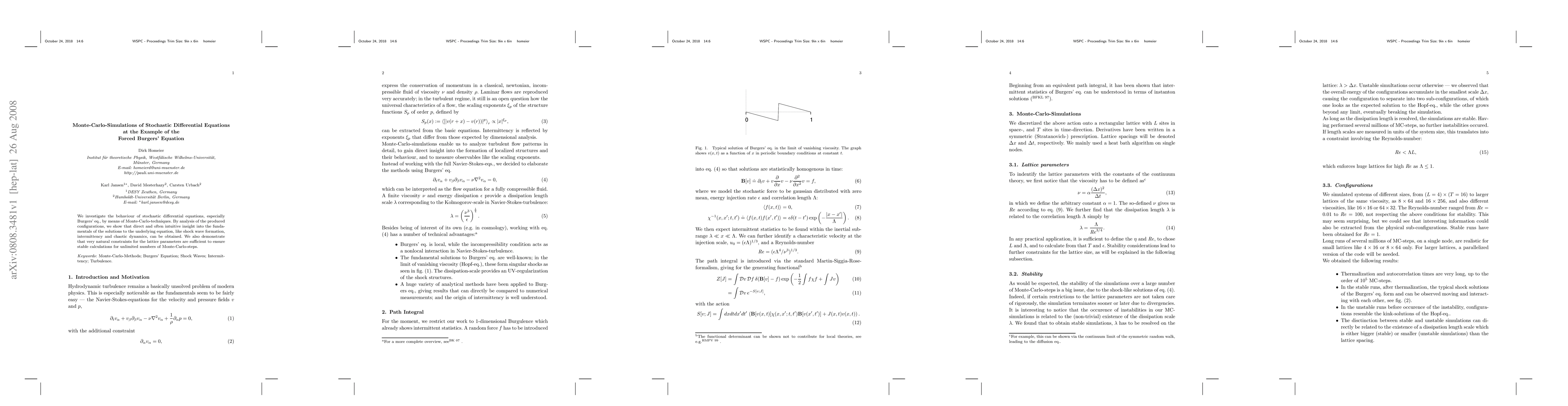 We investigate the behaviour of stochastic differential equations, especially Burgers' eq., by means of Monte-Carlo-techniques.