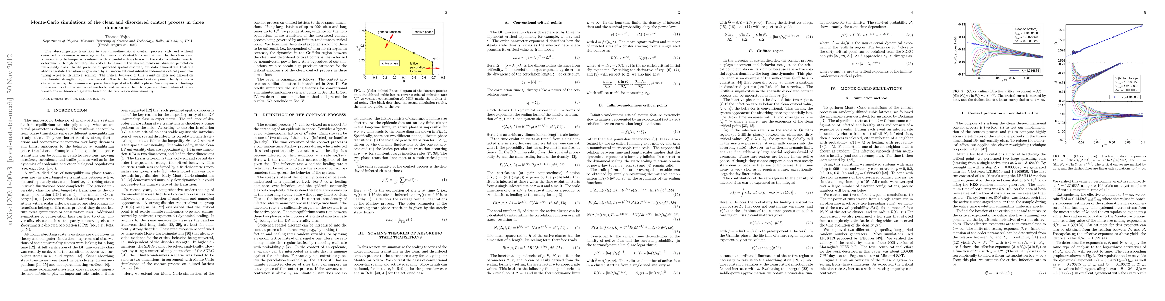 The absorbing-state transition in the three-dimensional contact process with and without quenched randomness is investigated by means of Monte-Carlo simulations. In the clean case, a reweighting technique is combined with a careful extrapolation of the data to infinite time to determine with high accuracy the critical behavior in the three-dimensional directed percolation universality class. In the presence of quenched spatial disorder, our data demonstrate that the absorbing-state transition is governed by an unconventional infinite-randomness critical point featuring activated dynamical scaling. The critical behavior of this transition does not depend on the disorder strength, i.e., it is universal. Close to the disordered critical point, the dynamics is characterized by the nonuniversal power laws typical of a Griffiths phase. We compare our findings to the results of other numerical methods, and we relate them to a general classification of phase transitions in disordered systems based on the rare region dimensionality.